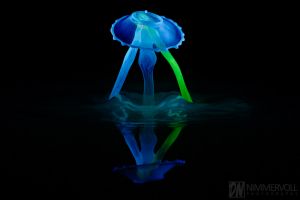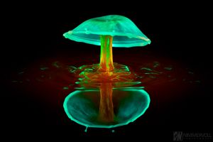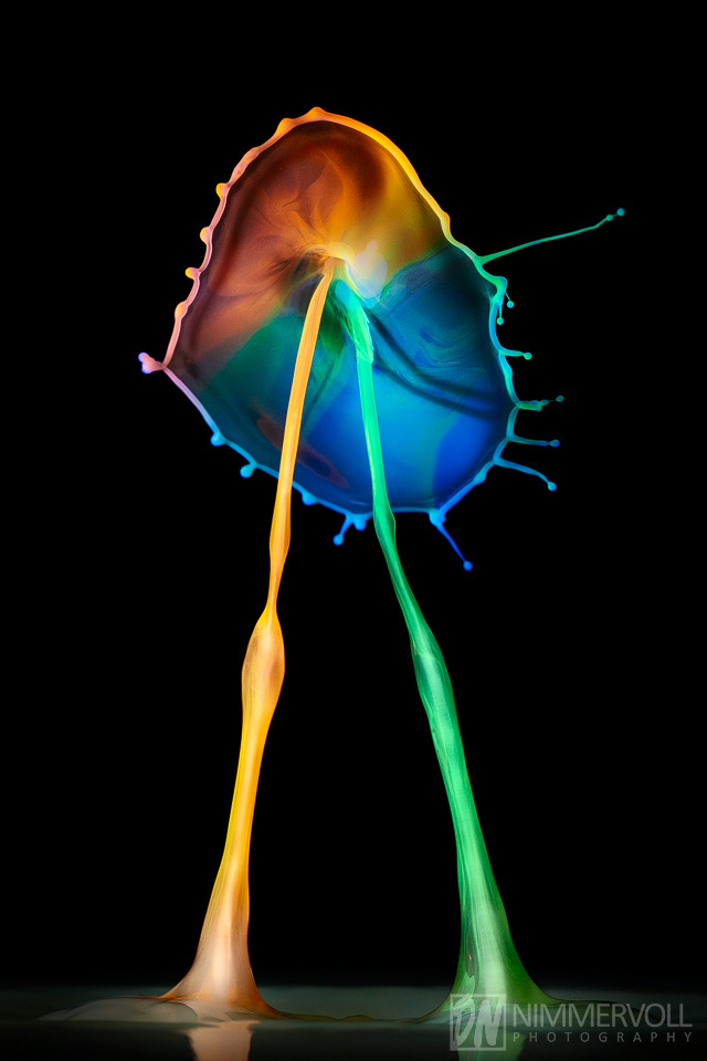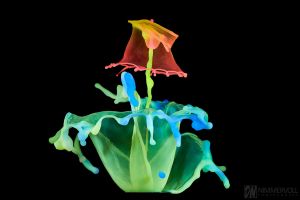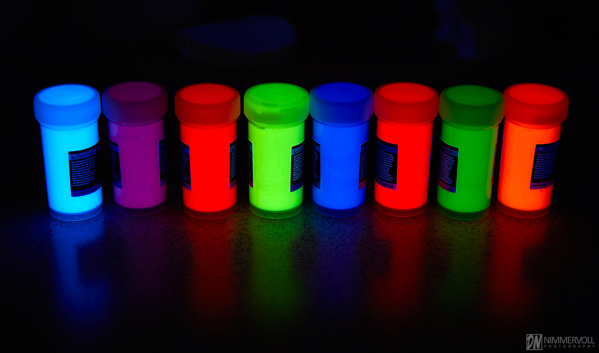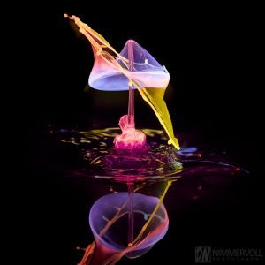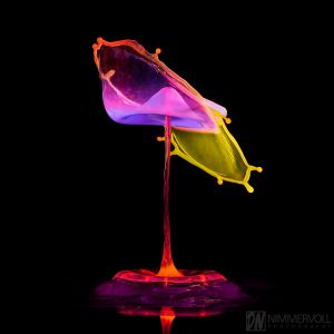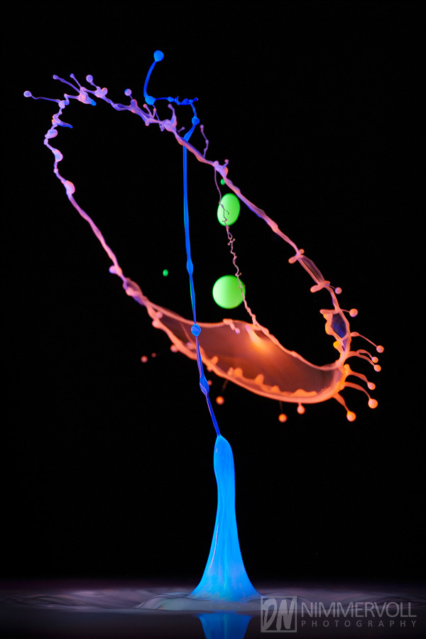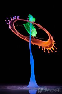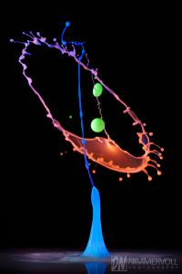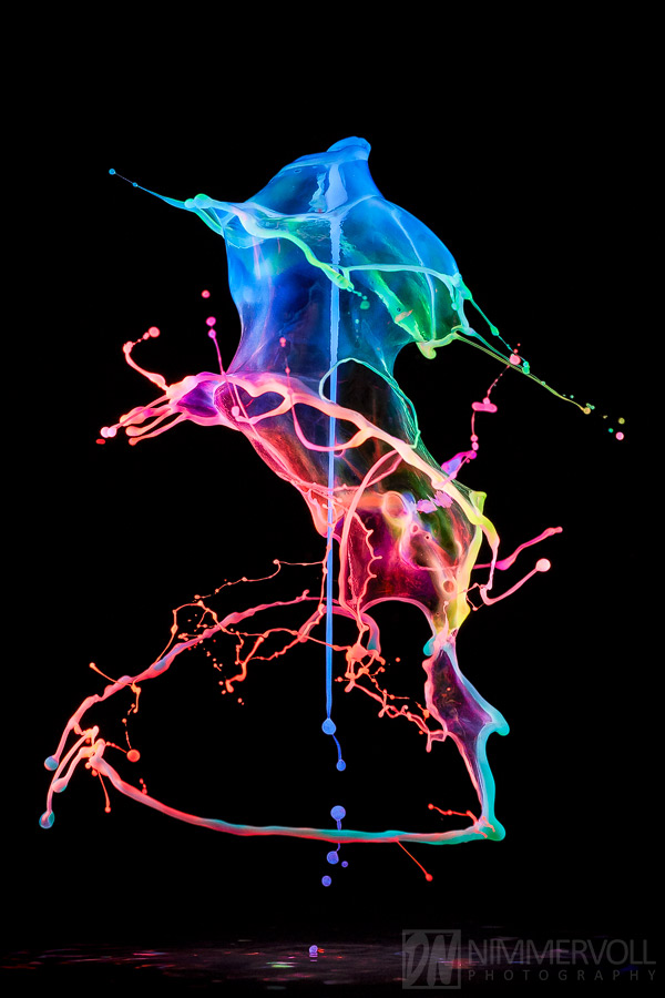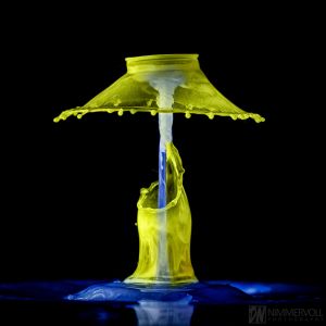 Diese Bilder entstehen mit Hilfe von einem speziellen UV-Blitz wie er normalerweise in der Dokumentation der Kriminalistik, aber auch in der Beweisführung z.B. bei Ausweisdokumenten, zum Einsatz kommt. Verwendet man dafür spezielle fluoreszierende Farben, beginnen die Wasserskulpturen zu leuchten. Fantastische Bilder mit kräftigen Farben sind die Ergebnisse. Weitere Infos dazu findest Du in meinem Blog: CLICK