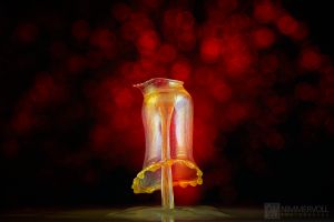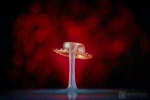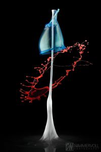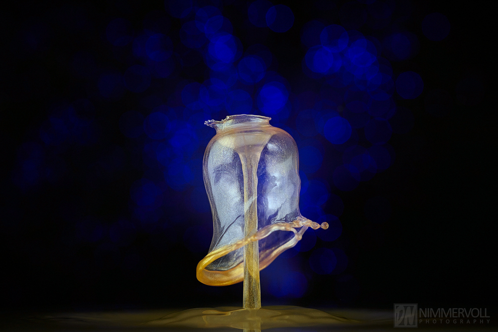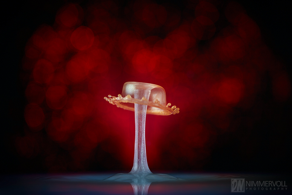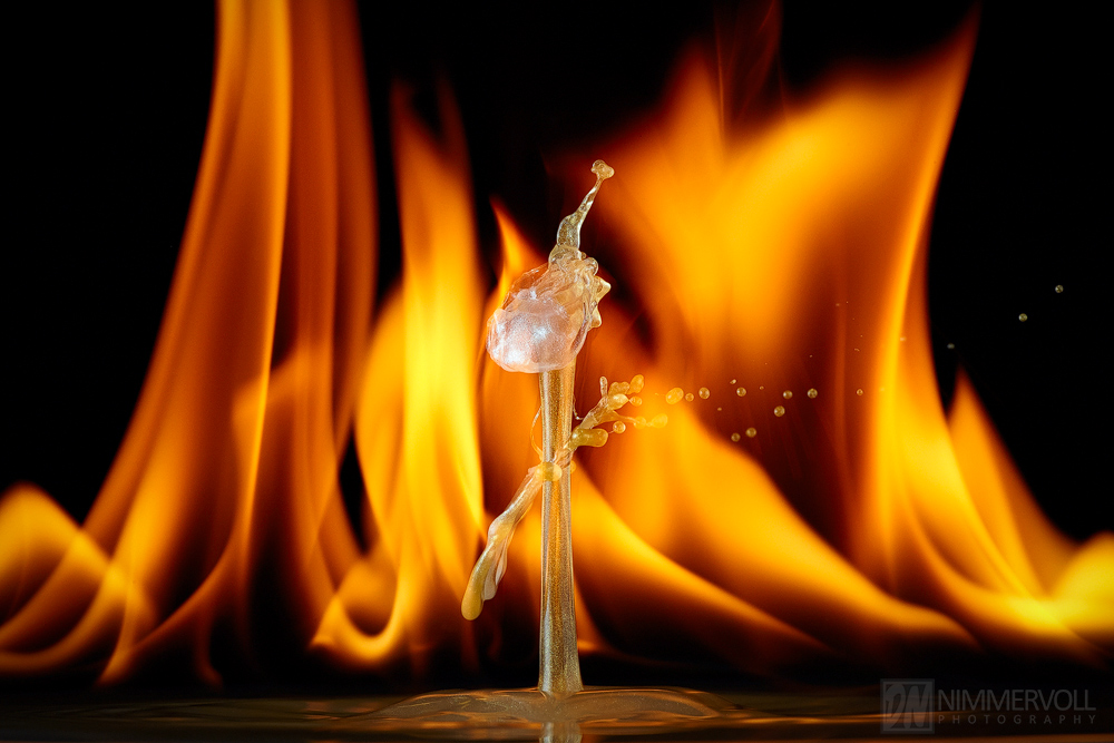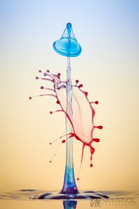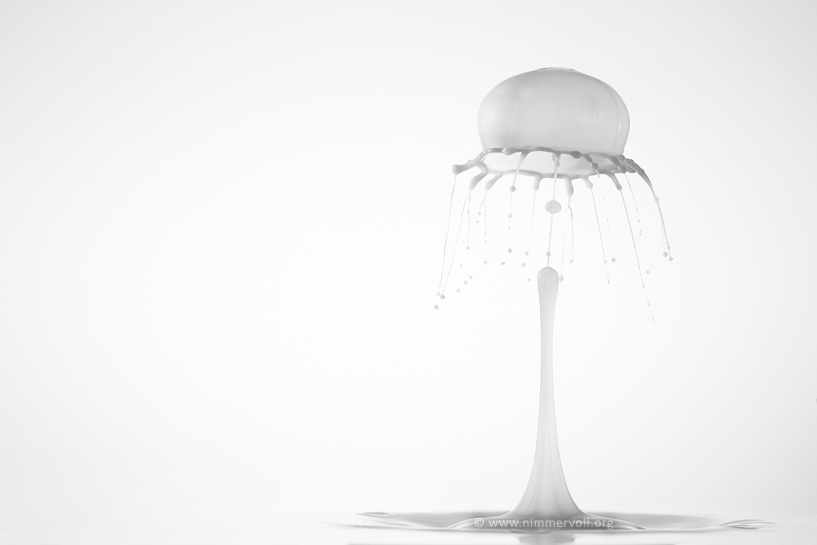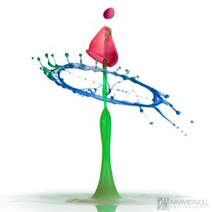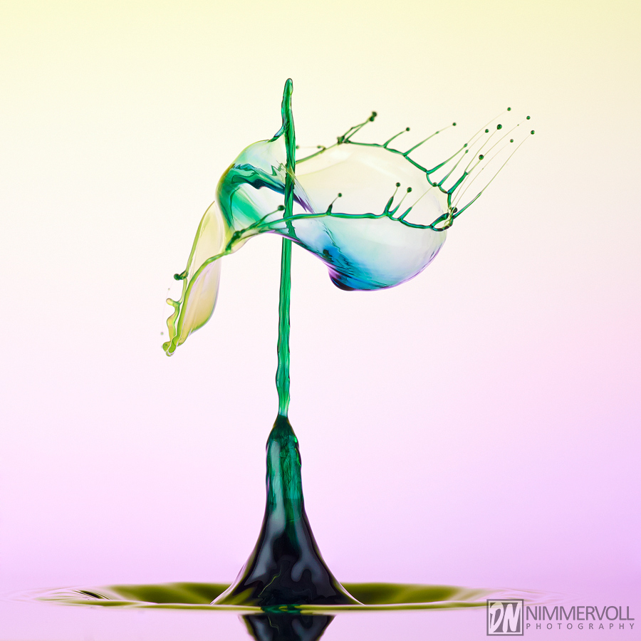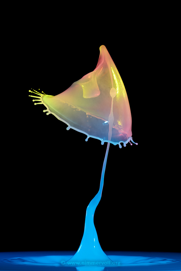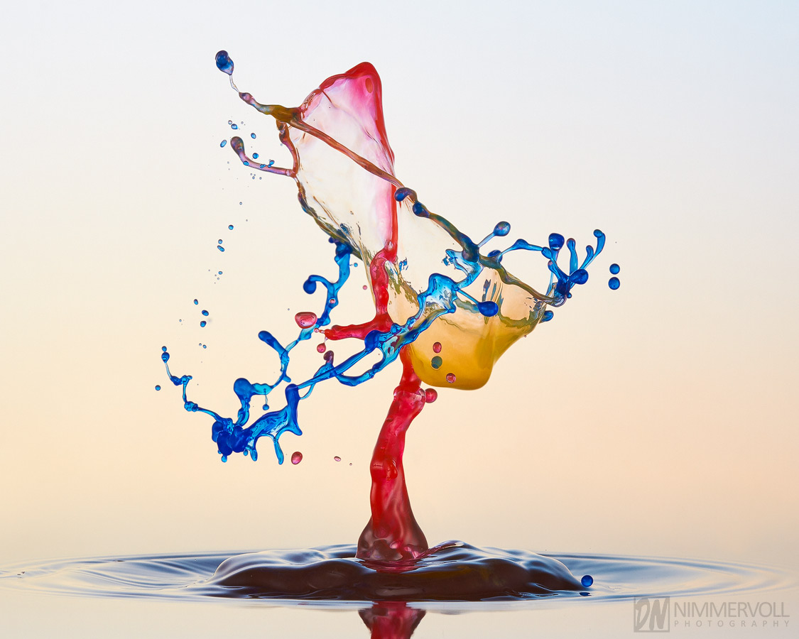 Fallen zwei Tropfen in der richtigen Größe und im passenden Abstand zu einander auf eine Wasseroberfläche, können die dadurch entstehenden Säulen bis zu 20 cm hoch springen. Durch diese Technik ergeben sich viele unterschiedliche Wasserskulpturen.