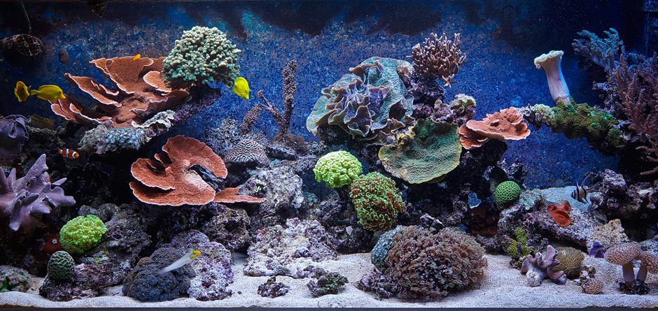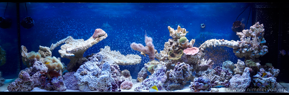 Verdunstetes Wasser wird mit normalem Leitungswasser durchgeführt. Beim Wasserwechseln verwende ich ebenfalls normales Leitungswasser das ich im wechsel mit unterschiedlichen Salzen auf die gewünschte Dichte bringe. Im ausgangs Wasser sind ca. 3 mg/L Silikat enthalten, was aber nicht viel ausmacht. Innerhalb von wenigen Tagen ist das Silikat im Aquarium nicht mehr nachweisbar.