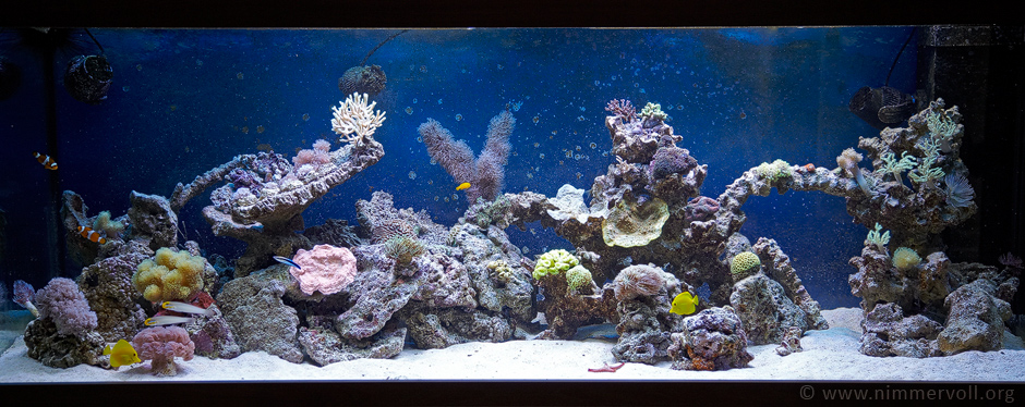 Das Aquarium ist 200x80x70cm (LXBXH) bzw. fasst 1120 Liter Wasser.