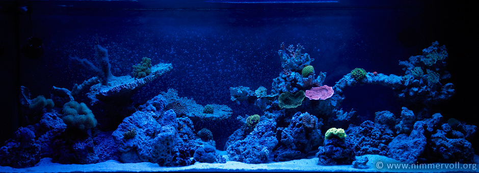 In der Blaulichtphase. Dabei sieht man wie schön die Korallen fluoreszieren. Die Blaulichtphase ist jeweils eine Stunde vor und eine Stunde nach Sonnenauf- bzw. Untergang.