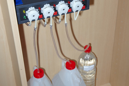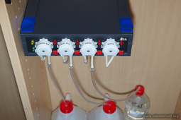 Steinkorallen verbrauchen für ihren Skelett Aufbau Calcium, Karbonat und Magnesium. Um diese Salze täglich automatisch nach zu dosieren, habe ich mir eine Dosierpumpe von GHL gekauft. Das funktioniert sehr gut und es kann jeder Wert individuell nach den Verbrauch eingestellt werden.